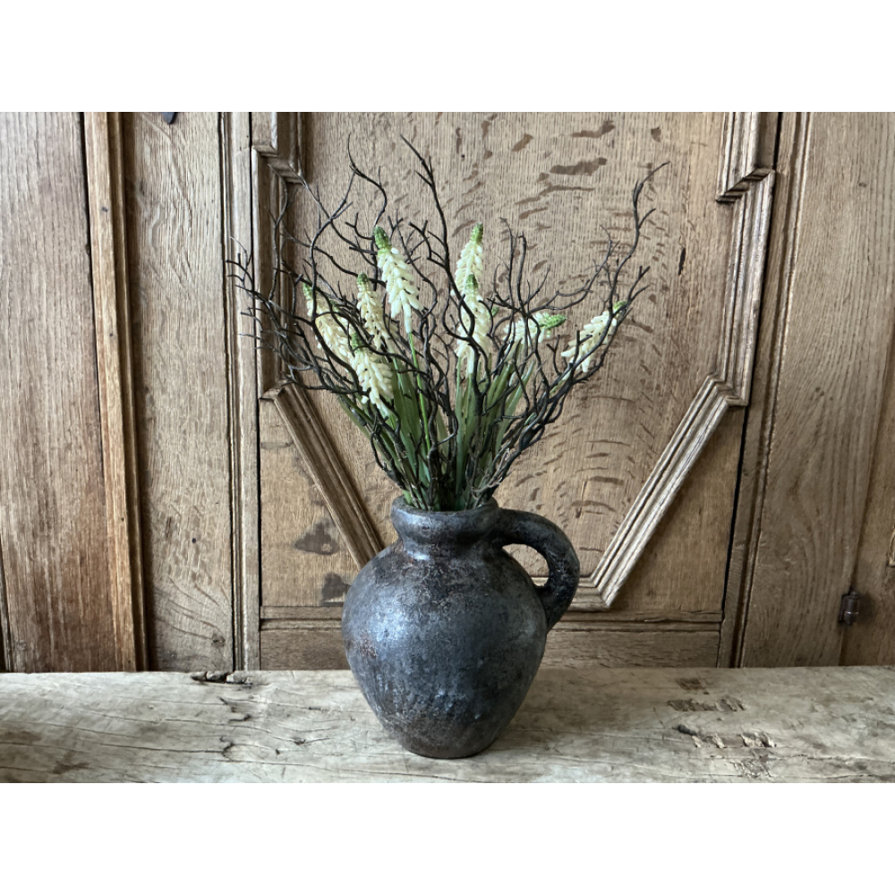 Super leuke set, deze bestaat uit een lief kruikje met hierop een boeketje kunstbloemen van de Countryfield met witte druifjes en takjes.
