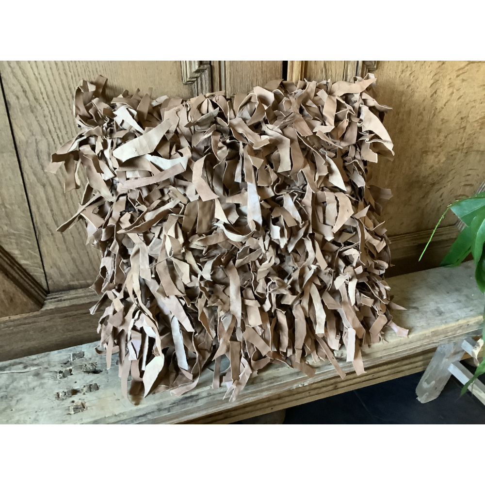 Kussen gerecyclede stroken leer