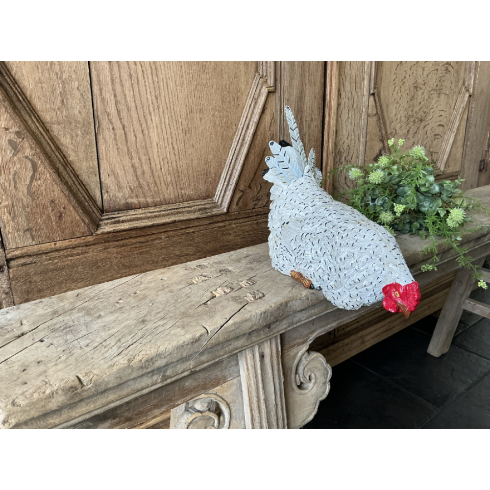 Hoe leuk is deze rand kip, zoals de naam als is, is het een kijkende kip over de rand.