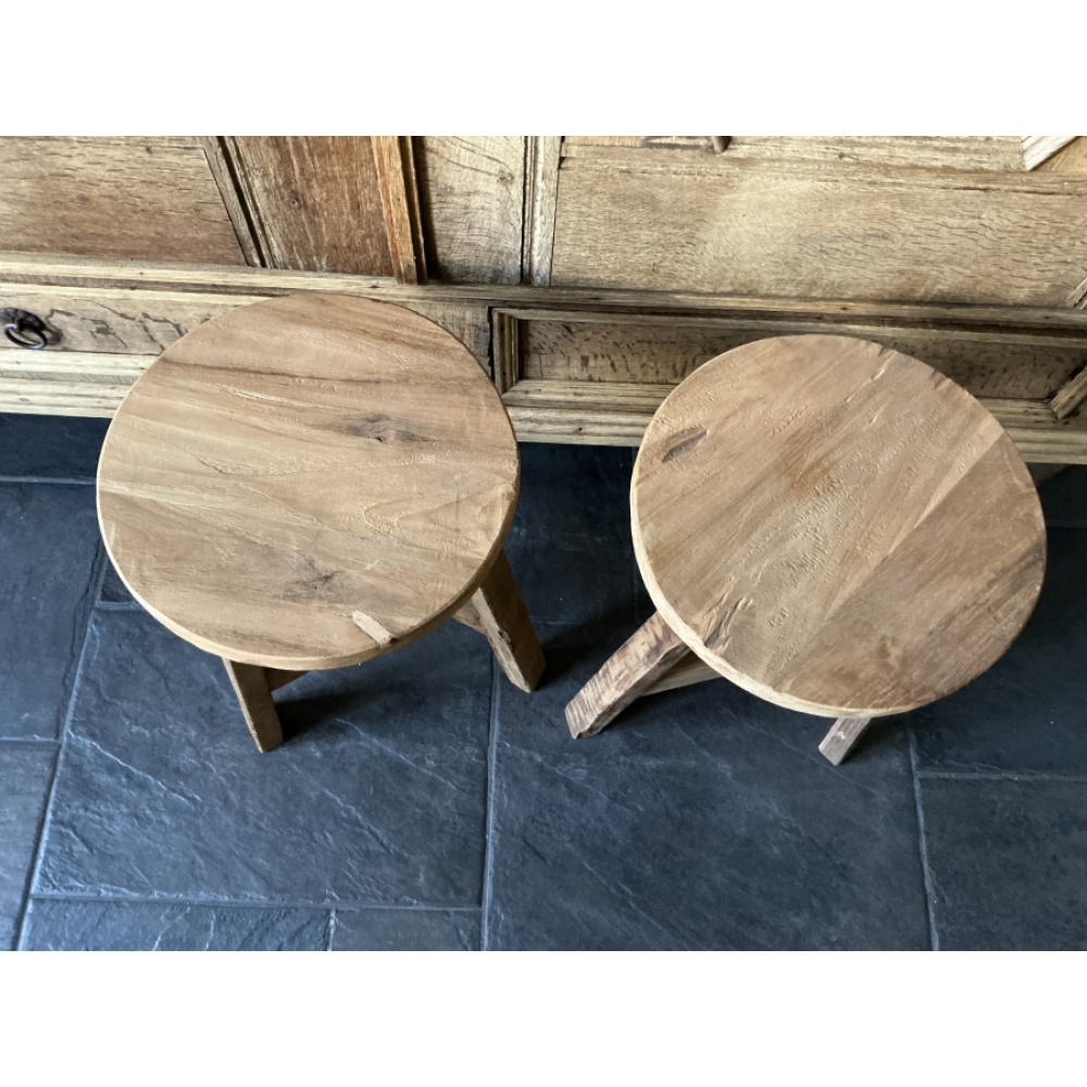 Leuke set van 2 teak houten krukjes