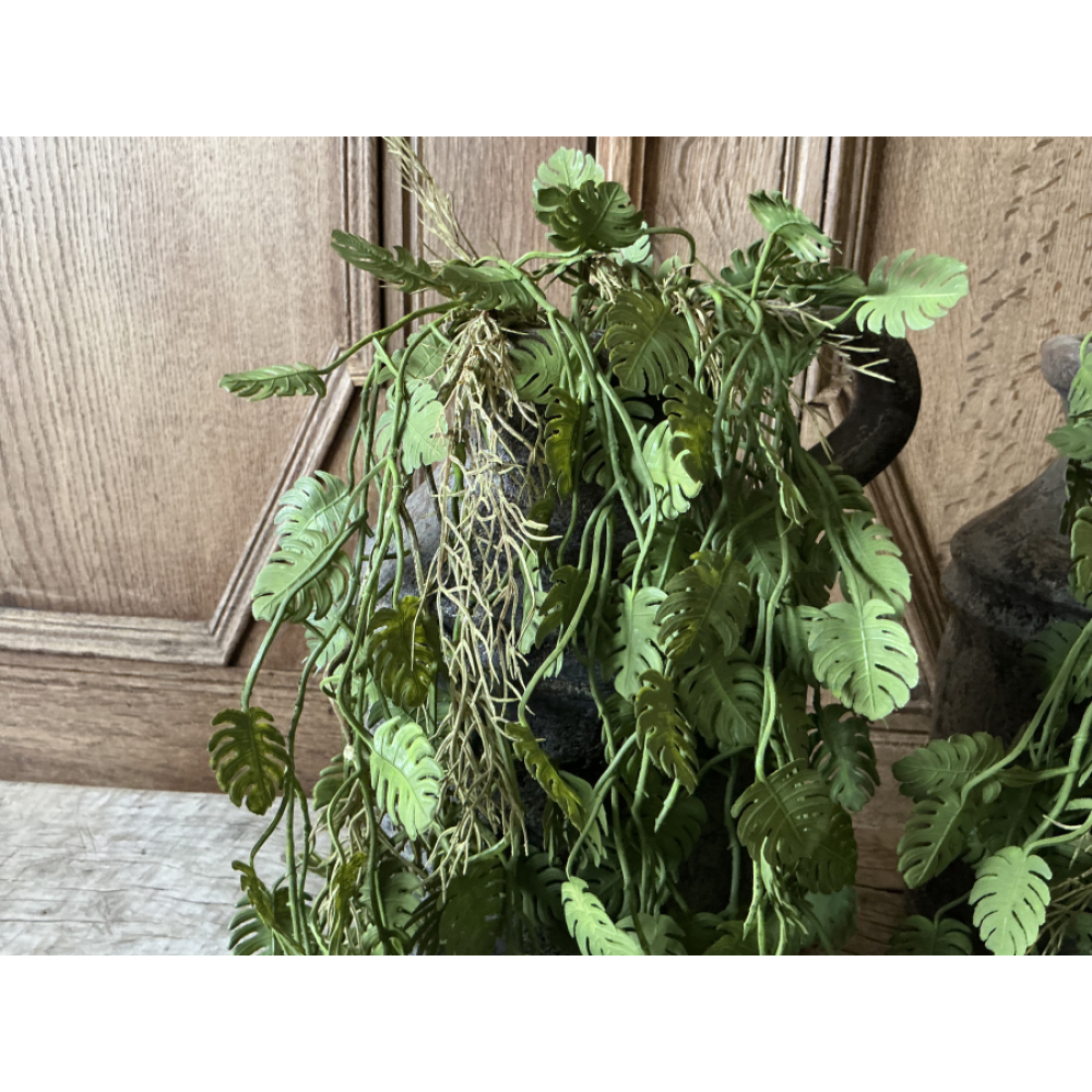 Super leuke set van 2 groene hangende kunsttakken Monstera van 150 cm lang