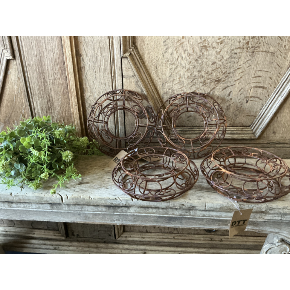 Leuke set van 4 metalen roestkleurige kransen.