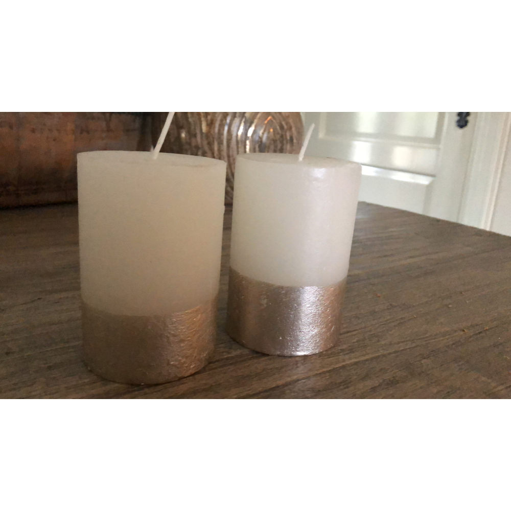 Mooie stompkaarsen, ze zijn ivoor wit van kleur met een rand welke bronskleurig is.