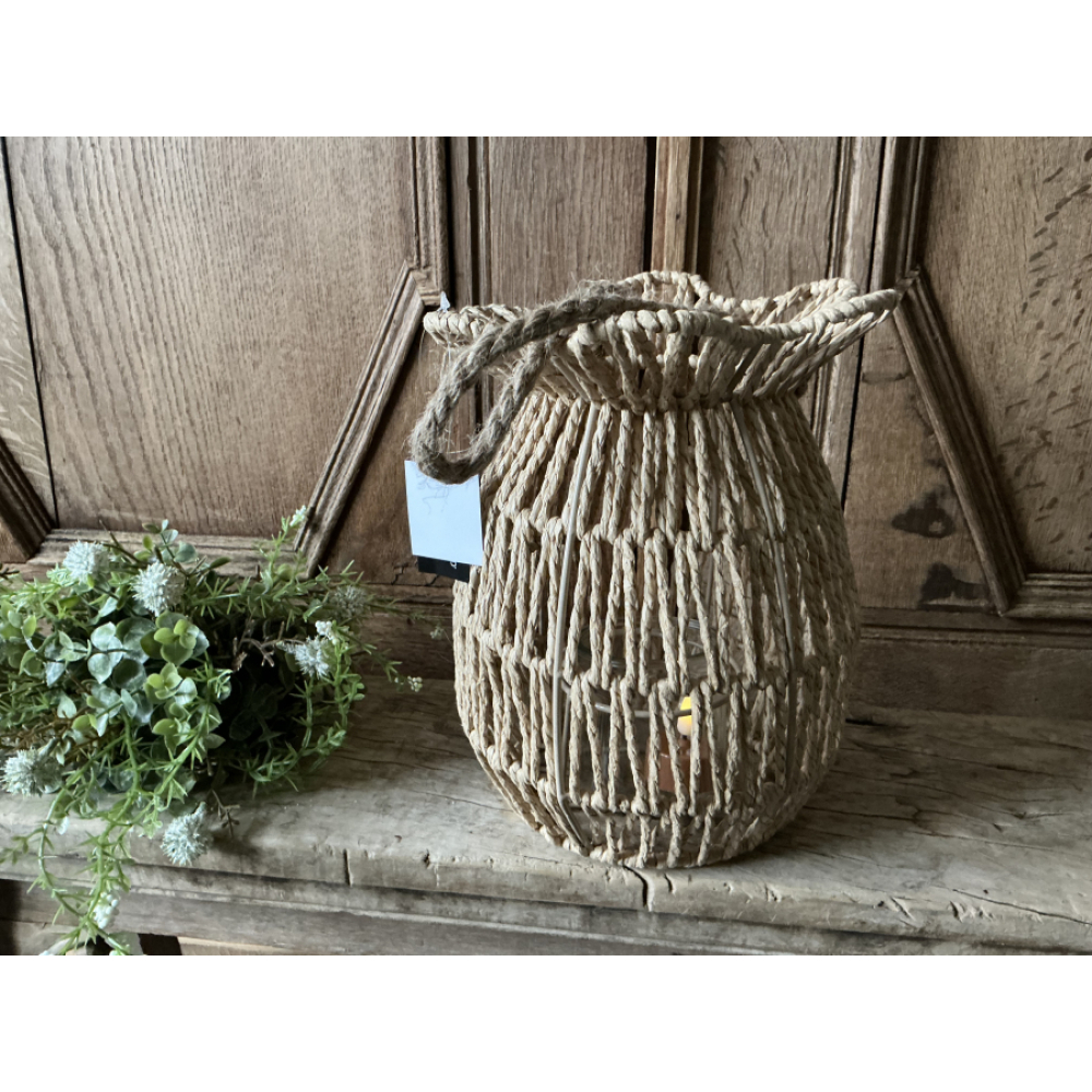 Ze zijn gemaakt van touw met binnenin een glaasje voor kaarsjes.