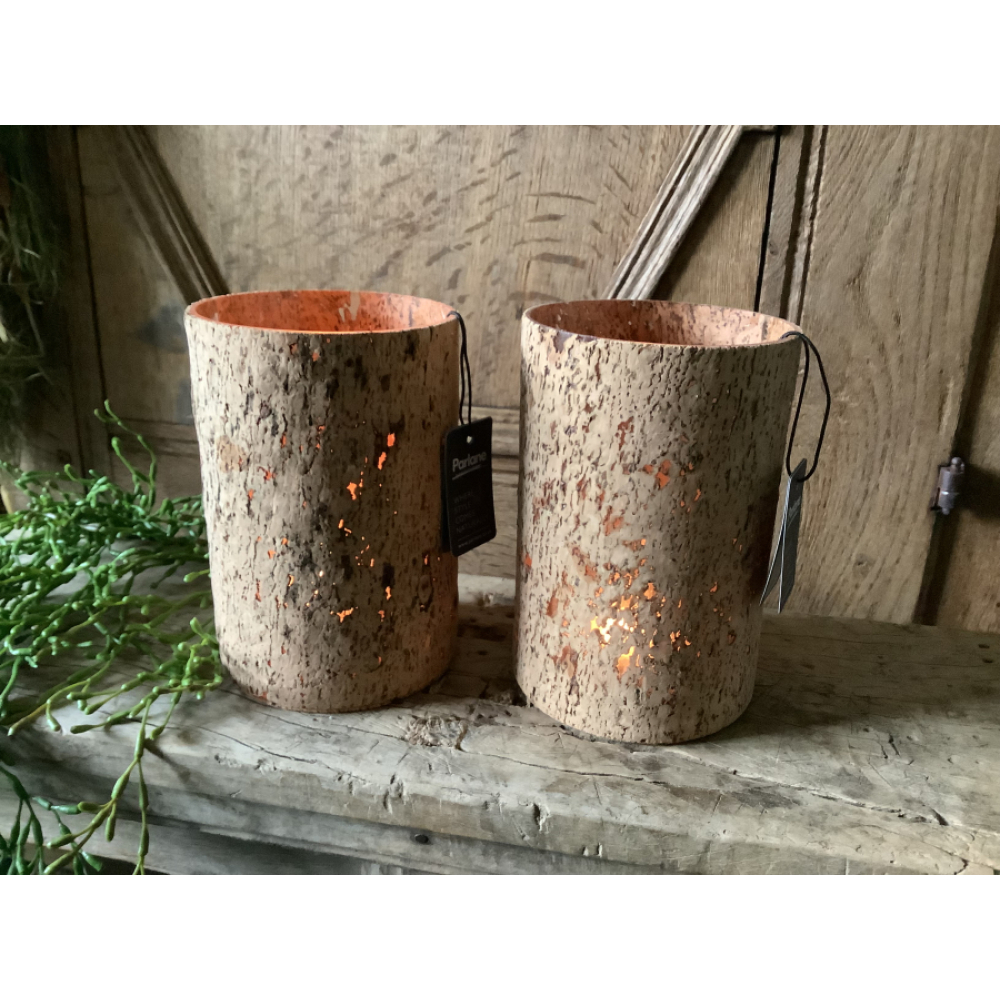 Mooie waxinelichthouders, ze zijn gemaakt van glas met aan de buitenkant kurk.